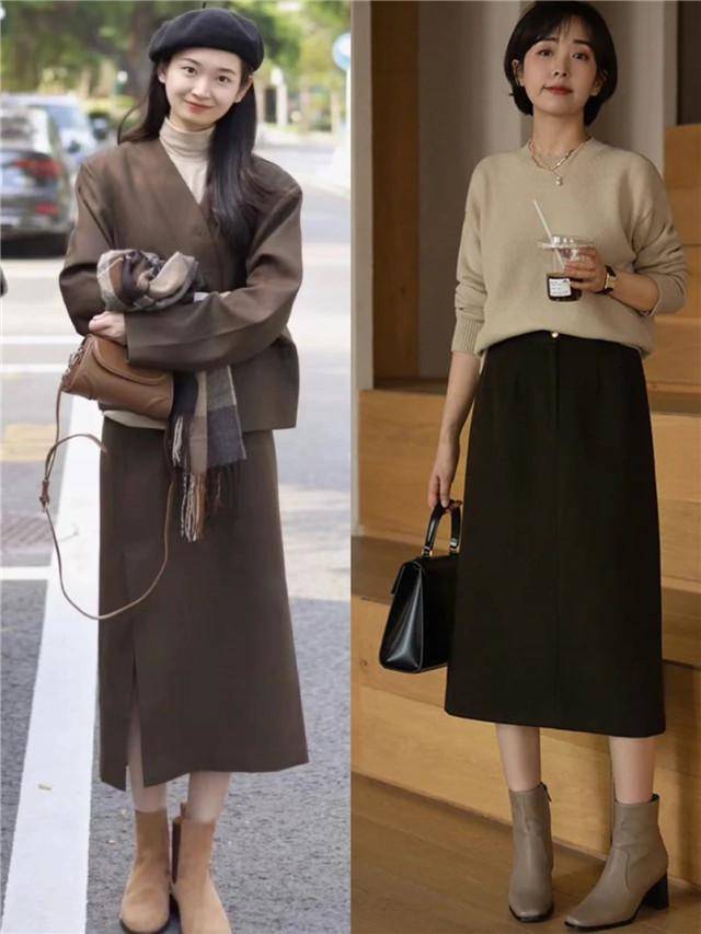 搭配烟管裙时,上衣的选择也至关重要。合身的上衣可以与裙子形成优雅的平衡,不至于让整体造型失去和谐感。无论是简洁的毛衣还是得体的衬衫,都能与烟管裙相得益彰。如果天气较冷,可以搭配一件剪裁考究的长款大衣,或是优雅的风衣,既增加了层次感,又能让整体造型更加流畅。