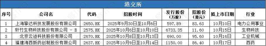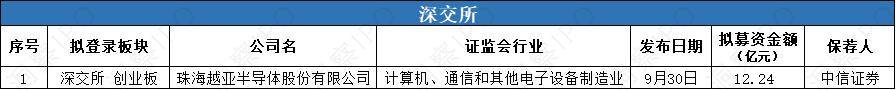 9月29日-10月9日,上交所科创板有1家公司递交上市申请;深交所创业板有1家公司递交上市申请。