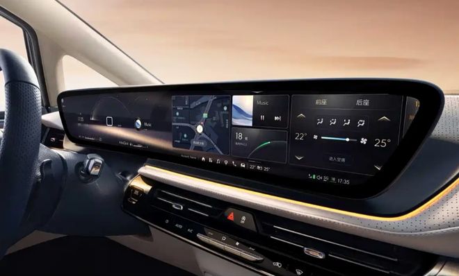 车内配置方面,果岭版配备了30英寸一体弧面6K屏和四辐式多功能方向盘,前排扶手箱内置4.3L压缩机冰箱。后排则配备了15.6英寸智慧屏,内置“沙发管家”应用,并支持AI大模型语音助手功能。
